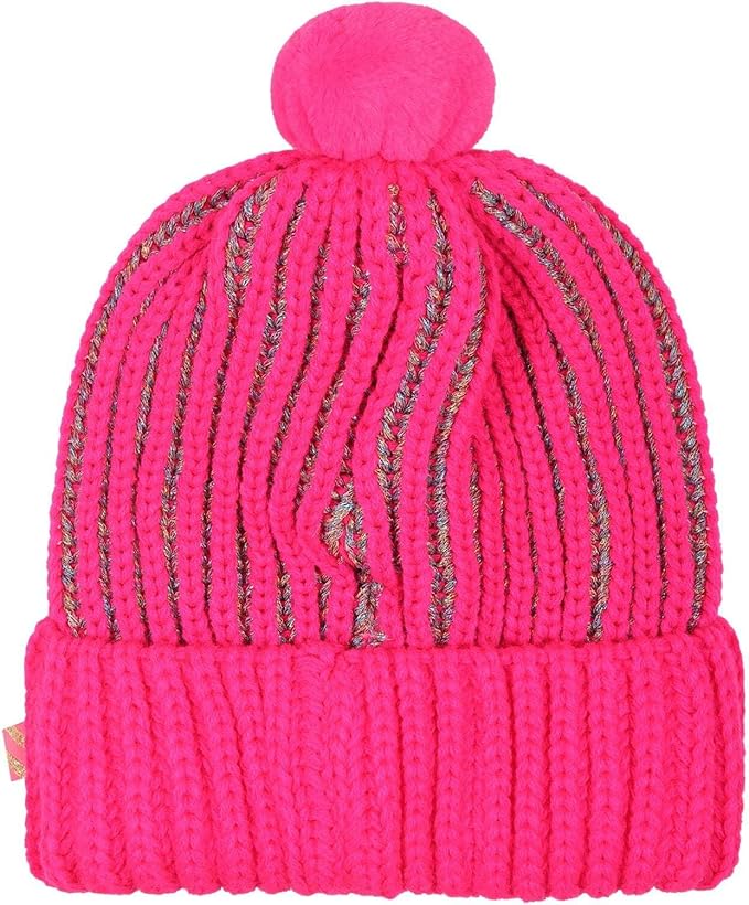 Billieblush Girls Hot Pink Hearts Winter Pom Hat