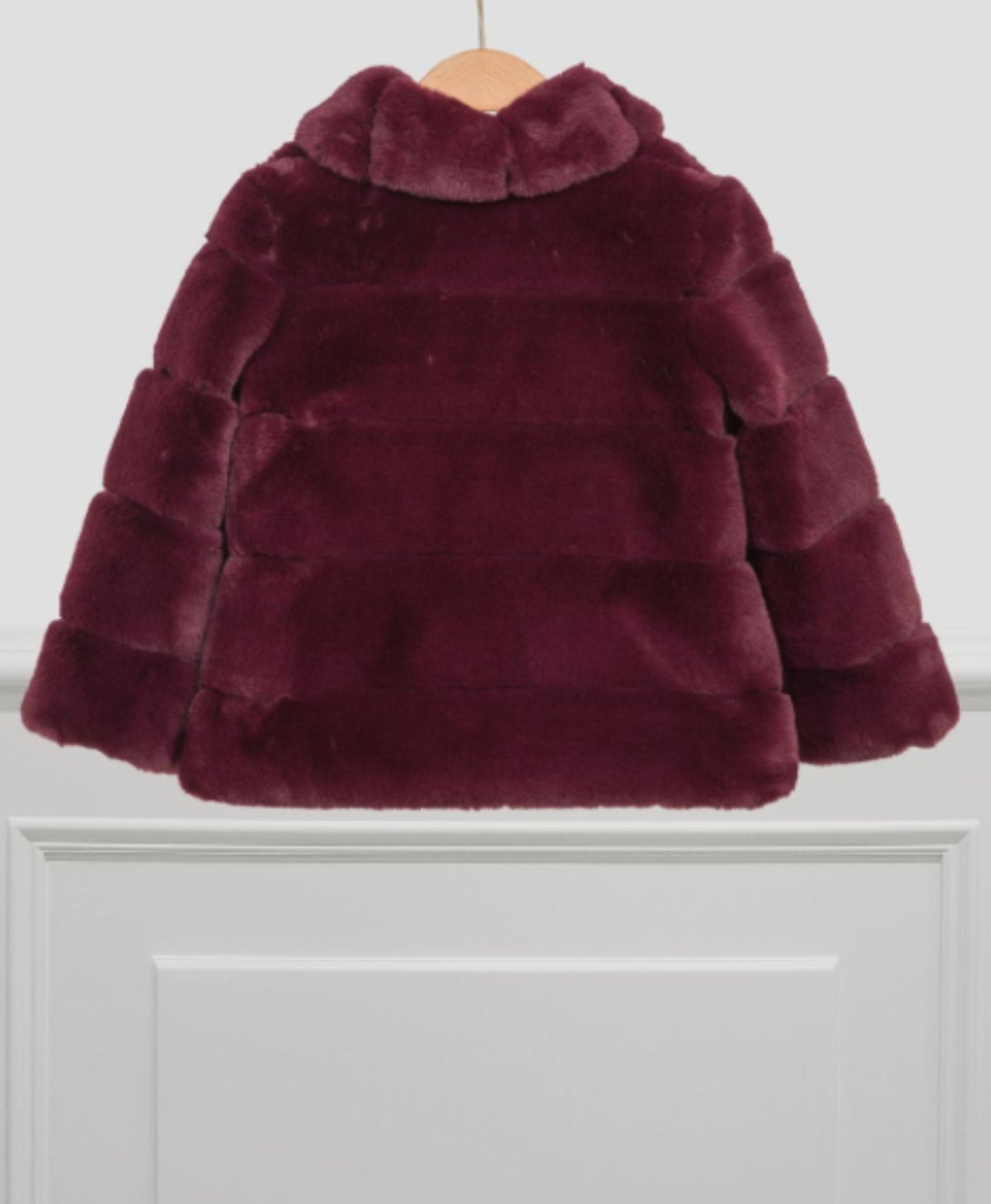 Beautiful faux fur coat in plum . Closure with inner snaps. A warm and ideal garment to give it a special touch and complete the styling. A warm and ideal garment to complete a stylish look.