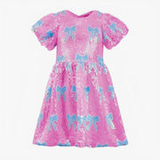 Lola and The Boys Pink and Blue Bow Sequin Dress