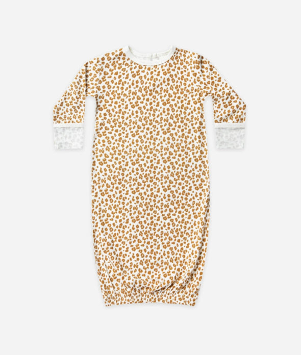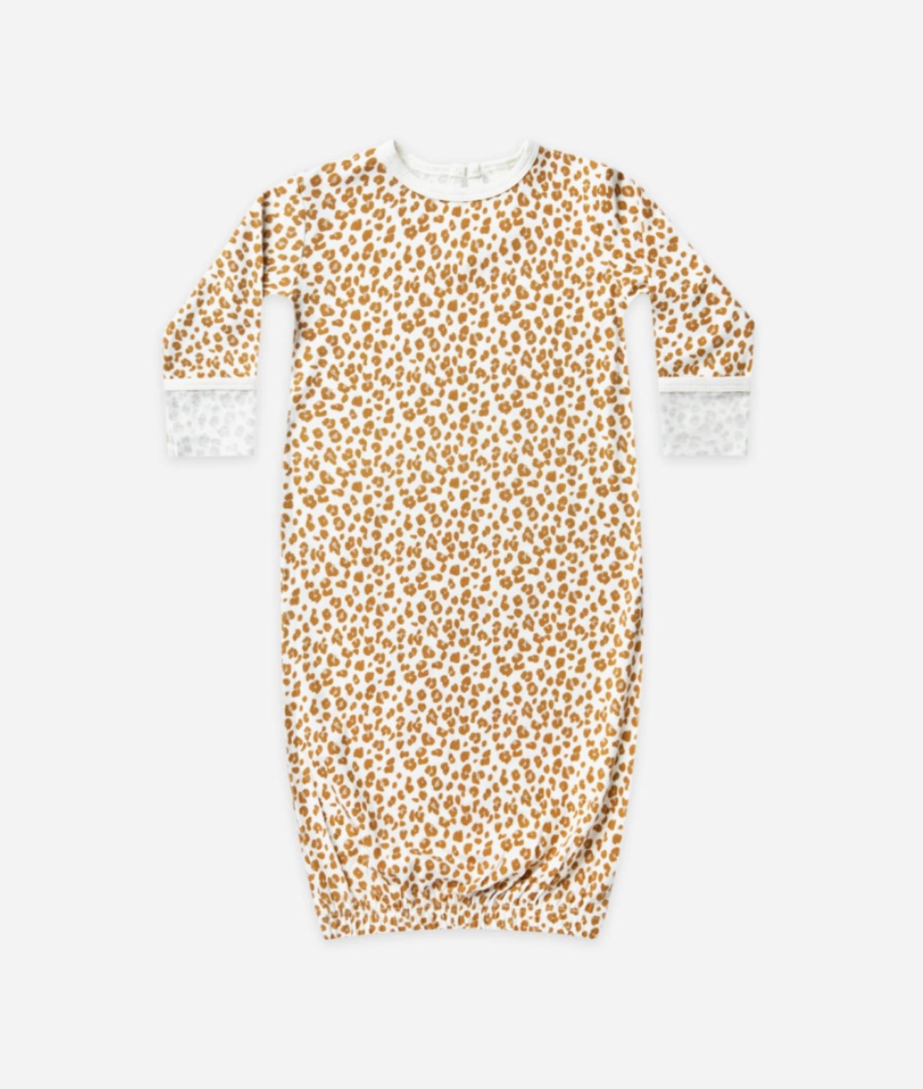 Baby gown with elastic bottom opening and fold-over hand mitts in our new soft and stretchy natural bamboo fabric.