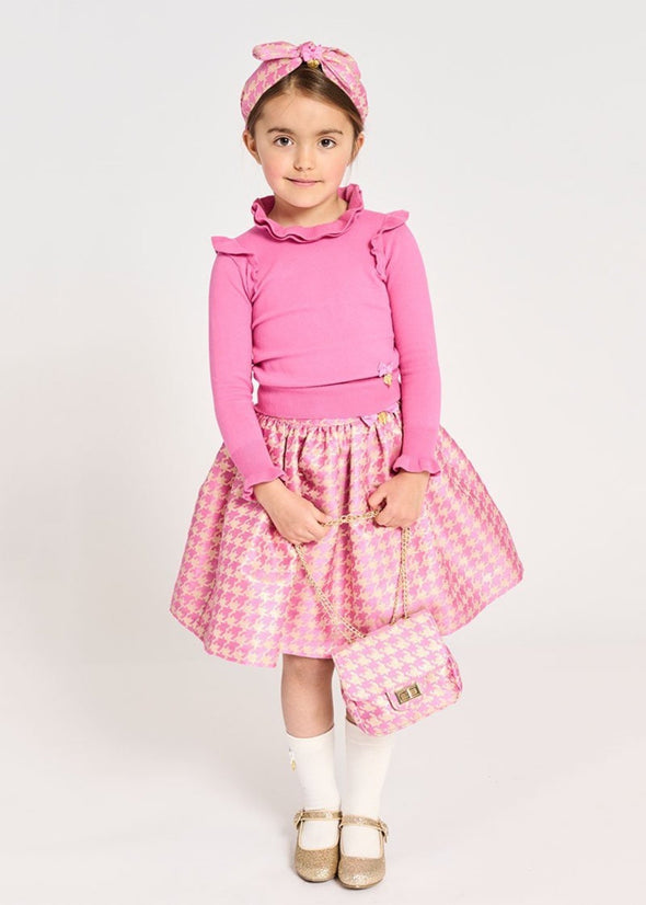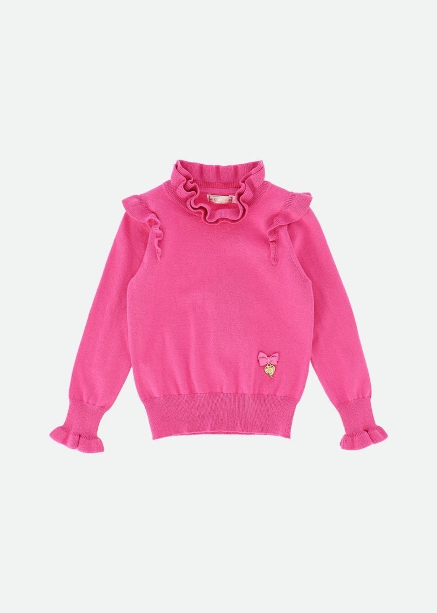 Girls Pop Pink Knitted Jumper With Ruffle Detail