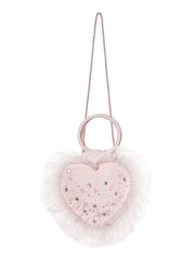 This Porcelain Pink Princess Purse is sure to make a statement. Crafted from the softest tulle and adorned with sequins, it features a cotton bag in the shape of a heart with a rope-secured strap and ribbon-wrapped handle. Versatile enough to be used as a purse, crossbody, or shoulder bag, it is the perfect companion for any day.