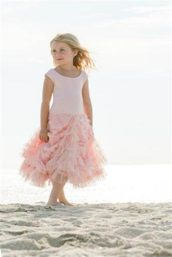 This dress is absolutely gorgeous and eye catching! Below knee (mid shin) length. Super soft with a ruffled and flowing bottom.