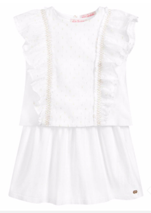 Lili Gaufrette Girls White and Gold Two Piece Dress Set