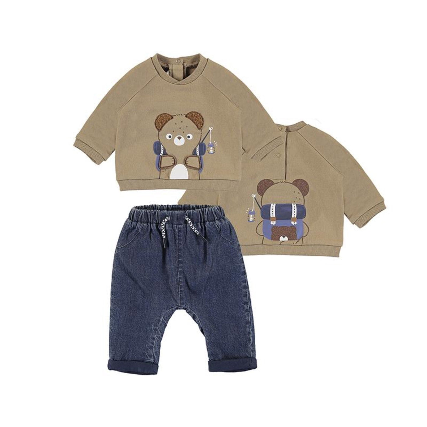 Mayoral Baby Boys Long Sleeve Brown Bear Shirt and Denim Pants Set