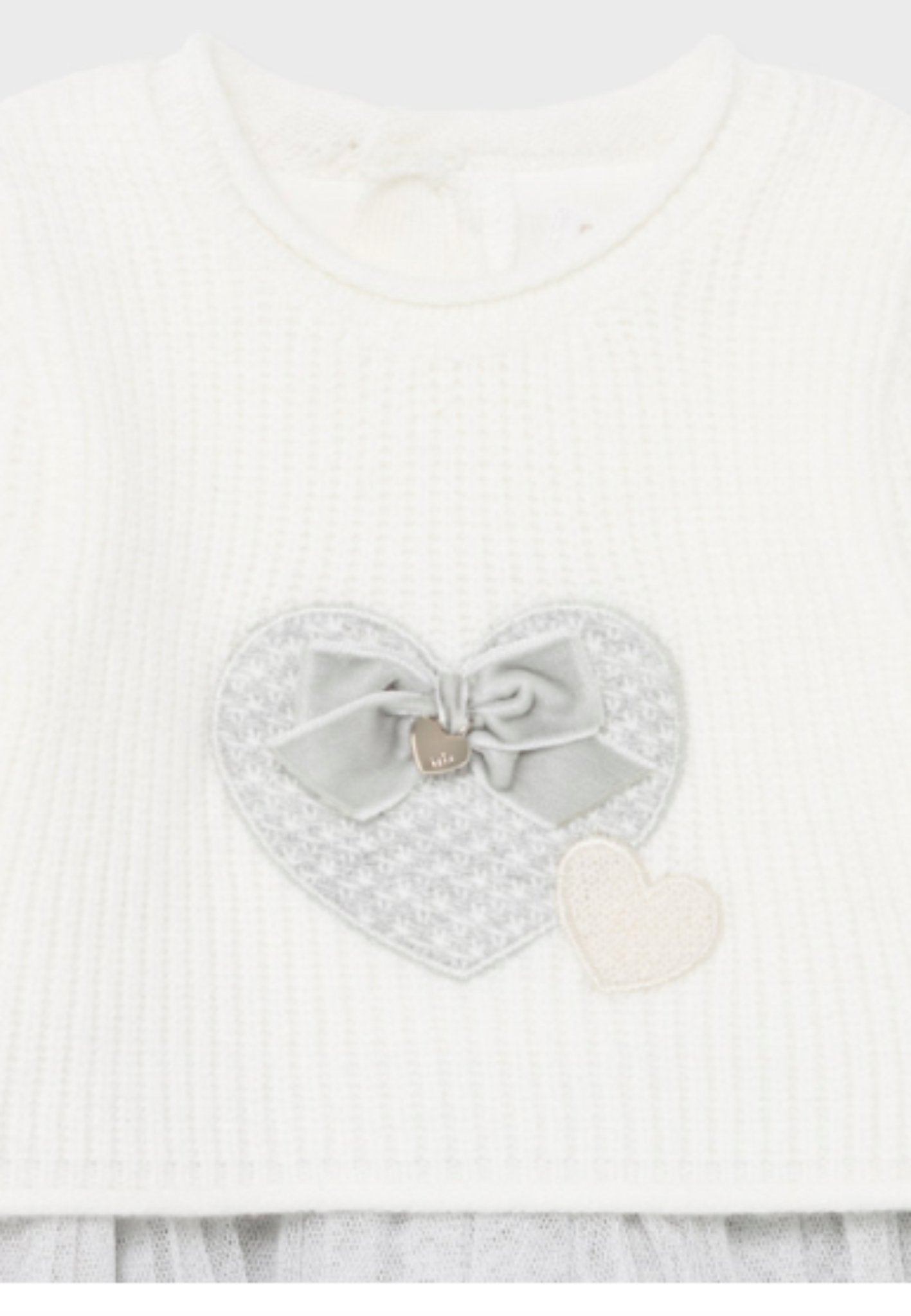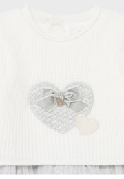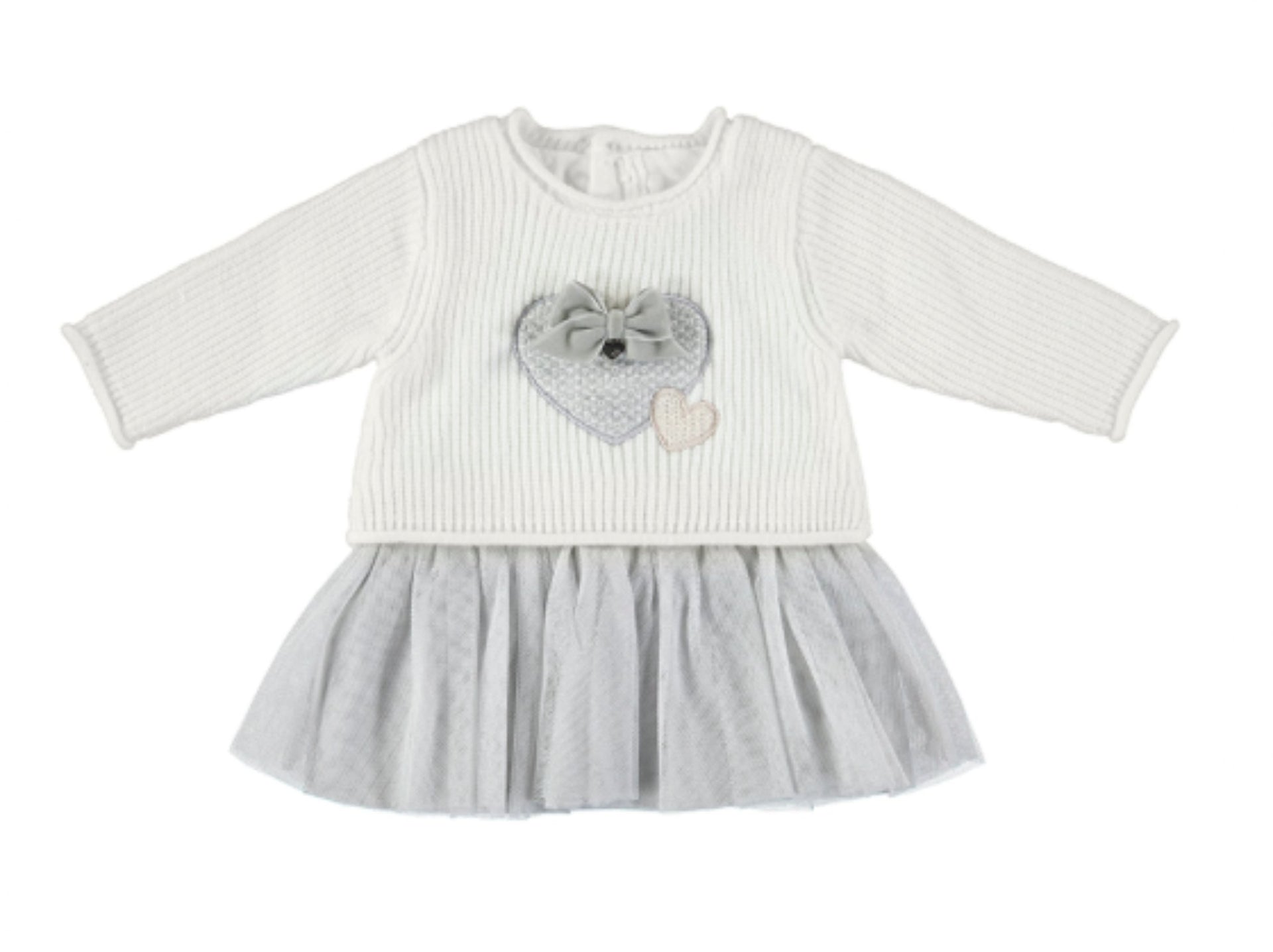Mayoral Baby Girl Knit and Tulle Grey and Cream Heart Dress