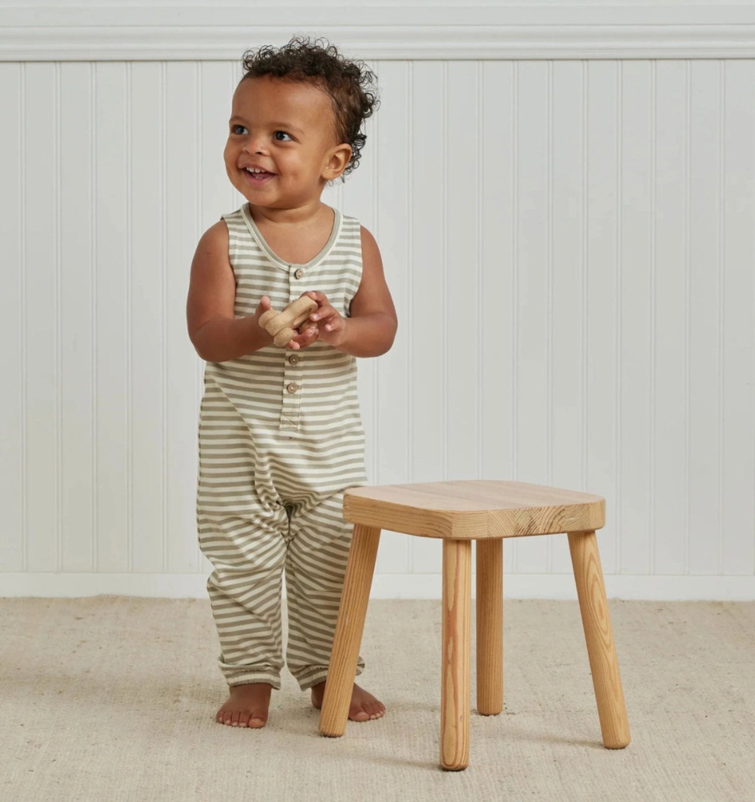 Decrease quantity for Quincy Mae Baby & Toddler Pistachio Stripe Jumpsuit