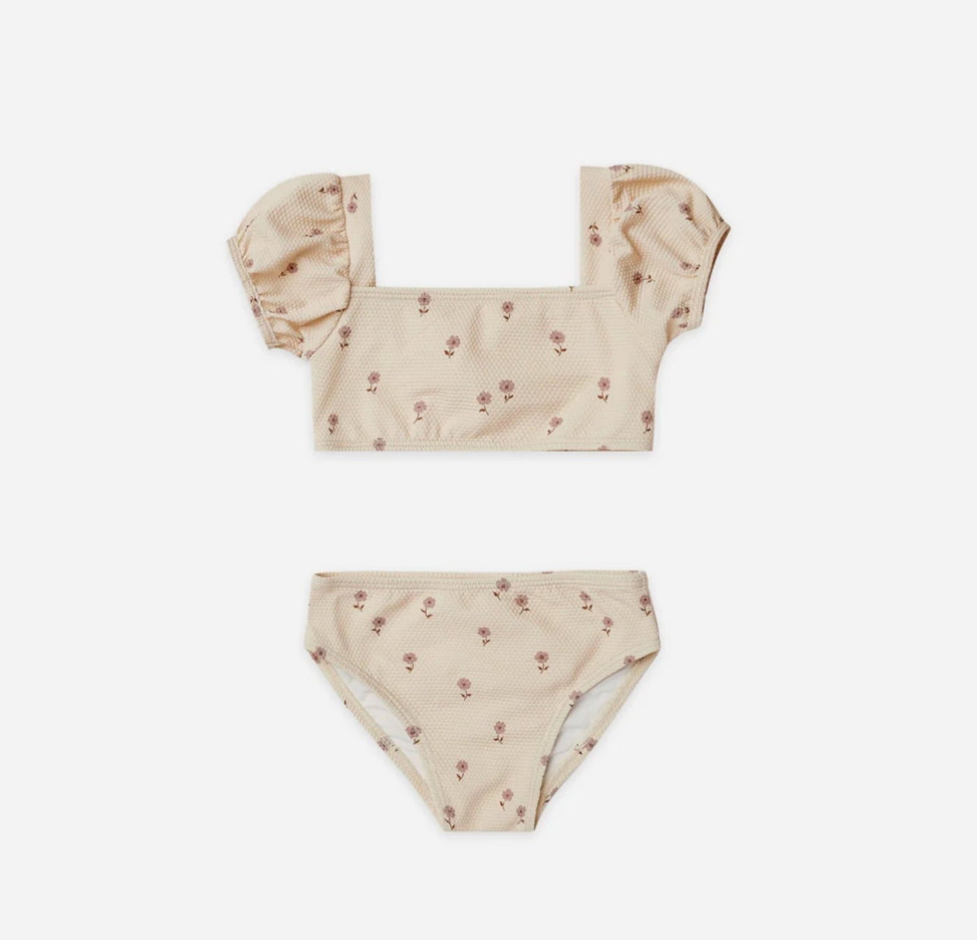 Two-piece swimsuit featuring puff sleeves and a square neck.