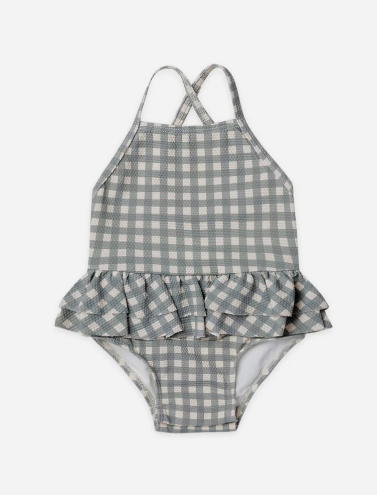 Quincy Mae Girls Sea Green Gingham One Piece Swimsuit