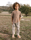 Spring and Summer From Rylee + Cru, the short sleeve Mason shirt with a mandarin collar. Coconut buttons along front placket.