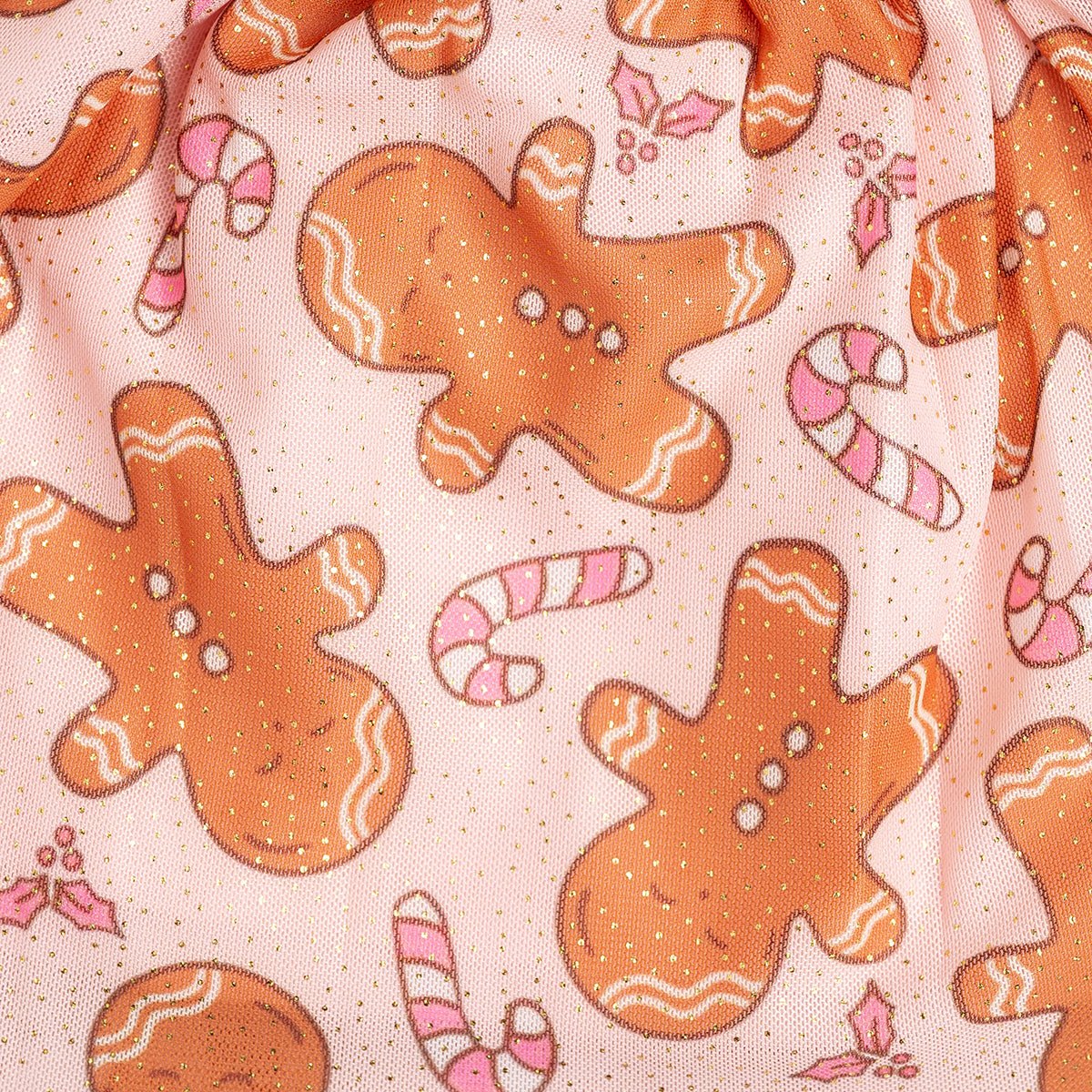 - Pale pink tulle printed with a gingerbread pattern