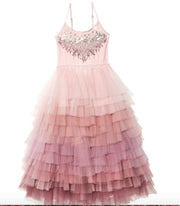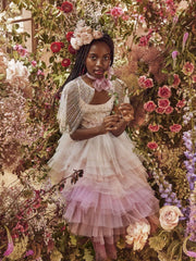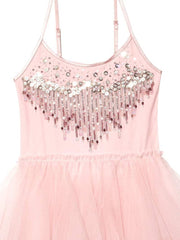 A true party gown, the Jewel Flower Tutu Dress features a bodice of soft cotton scattered with and array of sequins and beads.