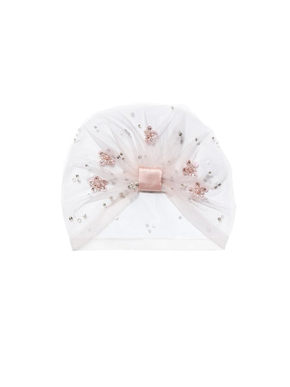 Dream of a life of luxury with the Goldie Turban! Crafted with plush tulle, an elegant ribbon, fantastic satin flowers, and sparkling sequins, this classic piece will give you a regal touch! Live life like it's golden!